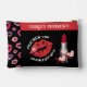 Here's a colourful and fun way to carry your personal makeup kit! We love these little accessory bags and you can personalize the text on this one which helps make for a great gift as well. The main design features a large set of puckered, kissing lips with the words "PUCKER UP MAKE UP KIT" around them. A tube of lipstick stands at attention next to it and we added a xoxo where hearts replace the letter "o". Additional lips run across the left side. Very cool.