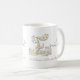 Decorative hand drawn capital E with name and meaning mug. Pretty heart and flower doodle design featuring hearts and flowers and the words Emilia Industrious, intelligent and energetic. © Unique drawing art and design by Sarah Trett. www.sarahtrett.com for www.mylittleeden.com on zazzle