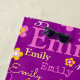 Typographic name and flower pink, yellow and white on a purple background towel design. Background colour can be changed if required. Fun personalized graphic text and flower art beach towel. Personalize with your own short name, currently reads Emily for help with personalization and other name lengths please contact me. © Art and design by Sarah Trett for www.mylittleeden.com