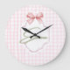Emma Personalized Pink Bow & Gingham Print Large Clock