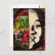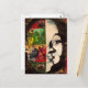 This postcard is an abstract art piece about the child martyr, Emmett Louis Till. It was created by visual artist, Kiarra Lynn Smith. It features Till and images of the people who transformed his life, for better or for worse