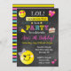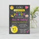 Our Emoji Birthday Party - Chalkboard Invitation is perfect for your child's emoji theme birthday party! This design features a chalkboard style background and colourful, emoji theme graphics such as heart eye emoji, cake, and hearts.