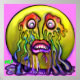 This sad emoji is weeping streams of rainbow tears that drip and drop into a swirling rainbow puddle. Bright bold colours swirl and drip from her eyes and onto her lips as this poor sad girl expresses her deep emotions.
