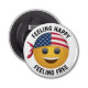 Unleash the joy at your next gathering with our charming smiling emoji bottle opener. This playful design features a cheerful emoji sporting an American flag bandana, perfectly capturing the spirit of fun and freedom. The phrase "Feeling Happy, Feeling Free" is boldly printed, adding a touch of positivity to your drink-opening experience. Ideal for parties, BBQs, or casual get-togethers, it’s a must-have accessory for any kitchen or bar. Bring smiles to your gatherings and enjoy your favourite beverages with this delightful opener.
