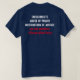 Blue t-shirt with red and white lettering, fully customizable.