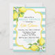 Celebrate the bride-to-be with this vibrant lemon-themed bridal shower invitation! Featuring cheerful yellow lemons and fresh green leaves against soft teal and white stripes, this design brings a touch of sunshine to your event. The elegant mix of bold and script fonts adds a modern yet charming feel, perfect for spring or summer celebrations.