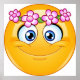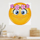 A yellow emoticon wearing a floral wreath around its head. This design looks really effective on these Poster