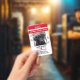 Easy to adjust emotional support animal id name badge with red and white background. All text is adjustable. If the fast template adjustment does not work for your logo, click on the customize further option to be able to delete and add your logo to the card. One photo option. If lost text space provided on back of this Photo ID.