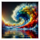 This cinematic wall art captures a massive wave of emotions crashing over a calm sea, with the wave represented as a swirling vortex of bright colours—red, orange, yellow, green, blue, indigo, and violet. The calm sea in the foreground contrasts with the powerful, colourful wave, symbolizing the intensity of emotions alongside inner peace. The artwork beautifully blends nature with abstract elements, offering a dramatic and vibrant visual that evokes both power and tranquillity.