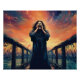 Emotive Figure Screaming on a Sunset Bridge | Poster