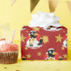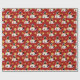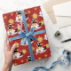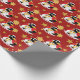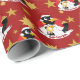 Papier d'emballage de Noël avec l'illustration d'un mignon pingouin empereur avec un chapeau de Père Noël rouge ; dessin animé de Noël pour les enfants ; dessin animé de Noël pour les enfants, sur arrière - plan rouge avec modèle texte personnalisable pour votre nom ou message ; illustré par Radka Kavalcova