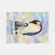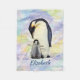 Adult Parent Emperor Penguin with Baby Chick. Cute Penguins from Antarctica Watercolor. Emperor penguins are truly beautiful birds. Digital Art Watercolor painting of adorable penguin birds of mother or father with baby. With splashes of colours in deep purple/blue, cyan green/blue, yellow and a bit of orange. Ready to be personalized, just add any name or delete it.