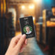 badge d'employé noir moderne avec photo, code QR, logo de l'entreprise, nom et titre de l'employé. Vous pouvez facilement le customiser avec vos détails d'affaires.