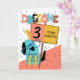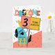 This is a fun and colourful employee 3 year anniversary card featuring a comical dog illustration. The dog is wearing huge glasses and has a sign with him on which is written: '3 YEARS ALREADY!', above which is the text: DOGGONE which is written in an illustrated, colourful font.
