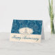 In the lower section of the design is a cream coloured text box on which is written: 'Happy Anniversary' in a beautifully flowing script font and in a matching blue and sparkle effect to the swirly pattern.