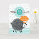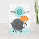 This is a fun employee 9 years anniversary card featuring a wonderfully quirky sheep illustration, where the sheep is wearing an orange bobble hat, green round rimmed spectacles and super trendy wellies. The text at the top reads 'WOW, 9 YEARS, already!', where the '9 YEARS' is in a digitally created badge effect. Beneath that is the sheep illustration, above which is an orange speech bubble and the text 'baaaaarely believable', where the a's in the word baaaaarely are out of alignment, to simulate the wobbly 'baaaaa' sound that sheep make.
