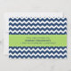 Customizable employee anniversary luncheon party invitations in modern and contemporary dark navy blue, bright lime green and white zigzag chevron stripes pattern. Celebrate your staff's many years of service with these unique custom office anniversary lunch invitations.