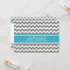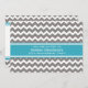 Customizable employee anniversary party invitations in modern and contemporary teal blue, dark charcoal grey and white zigzag chevron stripes pattern. Celebrate your staff's many years of service with these unique custom office anniversary party invitations.