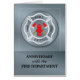Congratulate someone in the Fire Department on their employee anniversary. This card has a silver background with a round badge with a red fire hydrant and axes, representing the important work they do. Perfect card to wish someone a happy anniversary with their time at the Fire Department.