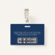 Easily personalize this Custom Horizontal Employee ID company Name Badge with Photo, Scan Bar Code or Qr code and business logo. A simple business design in navy blue and white colours fully customizable in front and back sizes, sans-serif basic and modern fonts and a professional and clear look. These standard security id name tags badges are avaiable with lanyard, metal clip or with retractable. You can personalize your id badge cards choosing any background colour and any font style with Graphic Design editor by clicking on customize further. No minimum order.