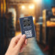 A modern minimalist personalized business badge with business logo and QR code. Personalize with your logo, QR code and details to create your own unique elegant blue and white business badge. Customize even further with a custom colour background or font.