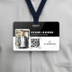 The back of the badge includes a clear logo area, company name and additional information. The QR code can link to employee details, verification pages, or internal systems. This adds security and convenience.