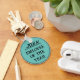 Create your own funny keychain. Employee of the year write name on blue key chain. Simple design boss gift.