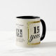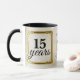 Faux gold and aged background employee anniversary, longevity or milestone recognition and appreciation coffee mug award, to celebrate and reward individual or group achievements, personalized with the number of years, employee name, message, and your logo, perfect additions to your work engagement efforts.