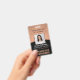 **Please note that the background is printed to look metallic, but the product is not made of metal and is not foil.** Represent your business in style by supplying staff with with modern and professional identification badges. The Logo, photo, bar code and all wording on this template are all simple to customize. The design features a faux metallic copper background with an elegant black curved arc, your company logo, one square picture, employee name and title, and UPC / barcode on back. It can provide organization and security for company staff, while presenting the corporate branding with a stylish classic appearance. Please note that copper is printed colour, not metallic foil.