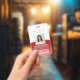 Employee Photo ID Barcode Your Logo Red Curve Badge