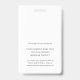 Maintain a clean, modern look for your team with these customizable vertical employee ID badge lanyards, featuring a minimalist white background and sleek black sans serif text. Each badge can be personalized with an employee photo, name, and two additional lines of custom text—ideal for including an ID number, job title, department, or office location. Add your company logo at the top to create a unified, professional brand identity. The reverse side includes an optional custom text field, perfect for return instructions, emergency contact information, or any other important details. Designed for simplicity and functionality, these badges are ideal for businesses, schools, healthcare settings, events, and more—anywhere a polished and secure ID solution is needed.