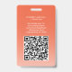 Represent your business in style by supplying staff with with modern and professional identification photo badges. The Logo, photo, QR code and all wording on this template are all simple to customize. To make your own QR code using the generator, simply type the website URL into the template. The design also features an orange ombre gradient background with unique curved arcs, your company logo, one square picture, and employee name and title. It's suitable as a promotional marketing tool or as an access pass for an event, such as a conference, concert, festival, or vip party. It can provide organization and security for company staff, while presenting the corporate branding with an elegant and classic appearance.