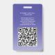 Represent your business in style by supplying staff with with modern and professional identification photo badges. The Logo, photo, QR code and all wording on this template are all simple to customize. To make your own QR code using the generator, simply type the website URL into the template. The design also features a purple ombre gradient background with unique curved arcs, your company logo, one square picture, and employee name and title. It's suitable as a promotional marketing tool or as an access pass for an event, such as a conference, concert, festival, or vip party. It can provide organization and security for company staff, while presenting the corporate branding with an elegant and classic appearance.