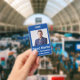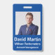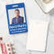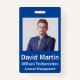 Customize your employee's Photo ID badges. All details can be modified or removed. Photo, name, company, department/division. Crisp white text on St Tropaz blue background. Every detail can be customized, including colours and fonts. Spot for barcode on reverse of badge, if needed. If not, can be deleted.