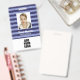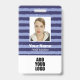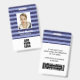 Personalize this blue striped employee ID badge with name, photo and logo. On the back you can add useful information like address, website, ID number and barcode.