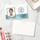 Simple, elegant and chic employee photo ID badge with a blue faux metallic strip. Customize the front with your logo, employee photo name and job title. On the reverse, add your company name and other information.