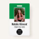 Employee Photo Name Logo Bar Code Green Black and White Badge. For further customization, please click the "Customize it" button and use our design tool to modify this template.