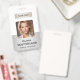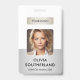 A modern and elegant corporate ID badge designed in a silver colour palette. Easily customizable with an employee photo, name, job title, company logo, QR Code and other business details. The layout features clean typography for a professional and clear appearance, ensuring easy identification. This ID badge is available with options for a lanyard, metal clip, or retractable holder. No minimum order required.