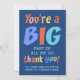 A colourful flat thank you card for your staff, team or volunteer group. This modern typographic card is the perfect way to say thanks in style. With the quote 'You're a big part of all we do'. Personalize with a custom company name and message.