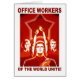 L'affiche humoristique de propagande des syndicats promouvant des "employés de bureau du monde, unissent !" Avec des employés de bureau jugeant des agrafeuses hautes, dans la révolte. Copies, affiches, cartes, cadeaux, T-shirts.