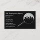 Modern employment agency or human resources business cards with a magnifying glass aiding in the search for workforce staffing.