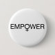 This feminist button says "Empower" with the Venus symbol. This classic feminist badge is perfect for everyday wear and shows support for women .