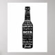 C'est une impression amusante pour quelqu'un qui cherche une impression pour une grotte pour homme. Il présente une silhouette d'une bouteille de bière avec une liste de mots de bière.