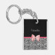 Un double noir et blanc à la mode d'empreinte de léopard a dégrossi porte - clé avec un arc rose mignon de ruban enveloppé comme un présent. Personnalisez en ajoutant votre nom sur un côté et votre information de contact dans un cas de perdu et avez trouvé. Présent parfait pour une fille girly de l'adolescence !