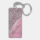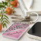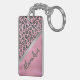 Sur ce porte - clé élégant est un ruban d'argent chatoyant qui divise l'empreinte de léopard d'argent glittery et la toile de fond rose chaud brillant où vous pouvez le personnaliser avec une lettre, un nom ou un logo pour le rendre unique. Vibes exotiques en verre.