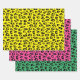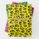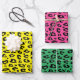 Feuilles papier d'enveloppement de Noël empreinte de léopard cool. Enveloppe élégante personnalisée couleur cadeau pour les fêtes, anniversaire et plus. Options mat et brillant. Motif pour envelopper les cadeaux et les fêtes amusantes. Exemples de couleur jaune vert et rose néon. Changez de couleur. Ensemble de trois.