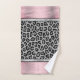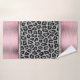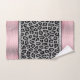 Serviette empreinte de léopard en argent exotique et en faux-fourrure noire sertie d'une gaine métallique brossée rose sur les bordures des serviettes pour le contraste. Vibes chic animal glam.
