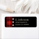Design cabine rustique avec étiquette de adresse noir avec une bande de plaid rouge, noir et crème et empreintes de pattes d'ours. Le rouge est changeable ! Échangez le rouge pour n'importe quelle couleur.