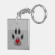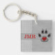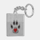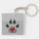 Porte - clé acrylique biface amusant à customiser avec votre monogramme. Parfait pour montrer votre amour pour la persuasion canine et avec une patte de chien gris et noir douce avec un coeur rouge ainsi qu'un arrière - plan empreinte de patte et un bord de pétoncle. Design original par Doreen Erhardt©.