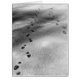 Un saupoudrage des enneigements frais une allée noire avec des densités variables. Deux ensembles de copies noires de botte commencent côte à côte au dessus de l'image et divergent pendant qu'ils approchent la visionneuse en cette photographie verticale et noire et blanche. Un ensemble de voies dirige en bas à gauche le faisant le coin tandis que l'autre ensemble d'empreintes de pas sort le bas à mi-chemin le côté droit du cadre.